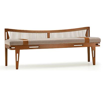 A inovação dos detalhes da madeira, a forma das almofadas e o tramado artesanal com cordas formam, nesta linha, uma obra de arte.
