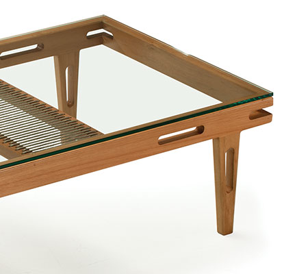 vidro, madeira eucalipto, cordas