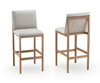 The Nina Stool is woven with ropes on the back, vertically, and the cushions with Y detail in the seams. Comfortable pillows and elegant style.