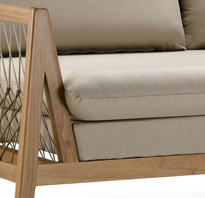 The composition of ropes in two colors shows a different and innovative look. The harmony of colors and pillows that refers to comfort and coziness.