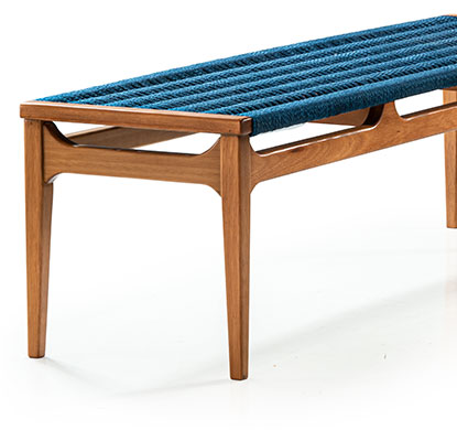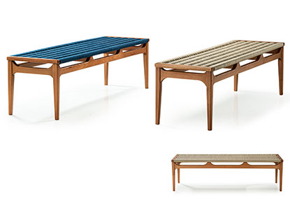 Inspired by a loom device, the TEARE bench brings in its Seat ropes intertwined with its Sustainable Structure, forming as it were the weft and warp that make up a tissue, thus referring to HANDMADE.