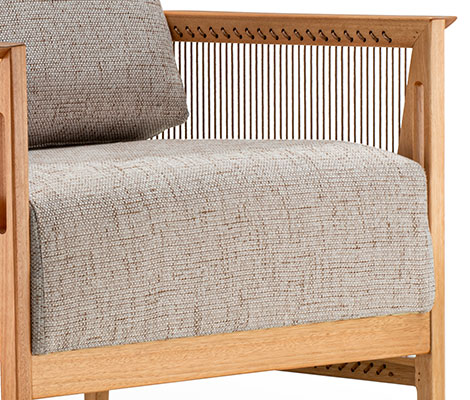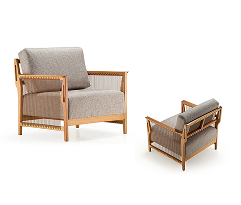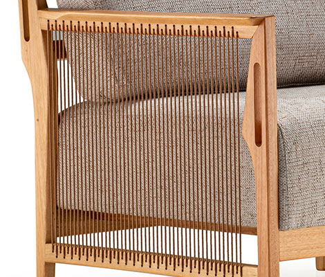 La innovación de los detalles en madera, la forma de los cojines y el tejido artesanal con hilos forman, en esta Línea, una obra de arte.